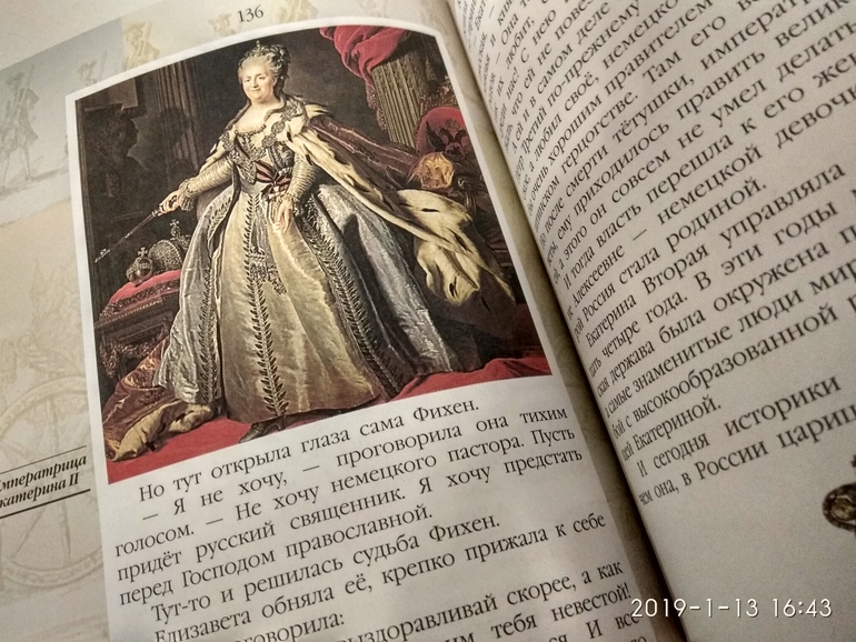 - Мама! Мне очень-очень нравится принцесса Фихен! Знаешь какая она была!!! Когда её привезли на смотрины в Россию, она начала усиленно изучать русский язык, потому что считала, что раз она в России, то и говорить должна по-русски. И вообще всё русское ей очень нравилось. И Россию она полюбила! Ведь так правильно: чтобы править страной хорошо, нужно любить её? Вот только муж, мам, ей достался не очень.... А, может, и к лучшему! Зато стала полноправной императрицей! И вообще, мам, современные историки считают, что лучше царицы в России никогда не было!!!