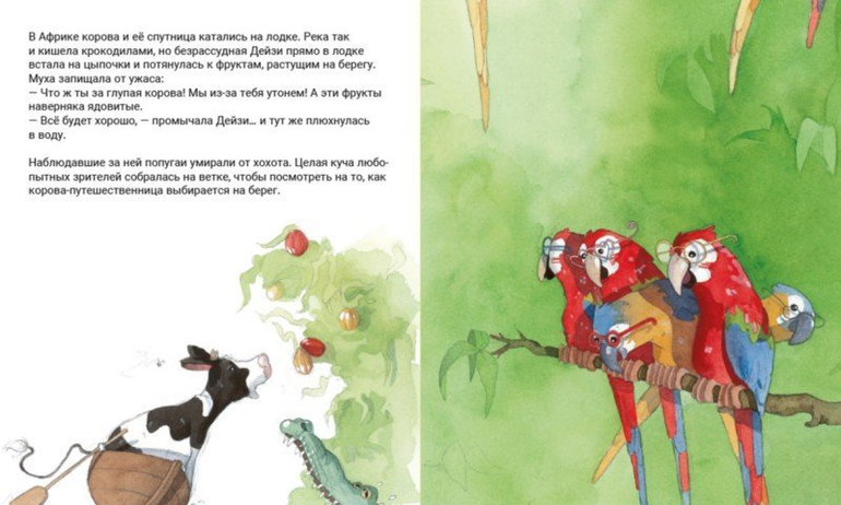 Трава, трава, вокруг одна трава… - как же надоел корове Дейзи однообразный зелёный пейзаж! Она решает сделать то, что до неё ещё не делала ни одна корова, - отправиться в кругосветное путешествие и посмотреть мир. Дейзи едет навстречу приключениям на поезде, плывёт на корабле, на лодке, летит на воздушном шаре. Побывав в разных частях света, она встречает удивительных животных и пробует экзотические блюда. Увидев мир, корова-путешественница понимает, что на свете нет ничего вкусней сочной травы и нет ничего прекрасней бескрайних зелёных полей родного дома.
