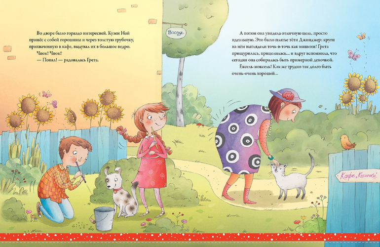Весёлая девочка Грета - настоящая счастливица. У неё много друзей и большая семья. В этот раз Грета отправилась на день рождения к своей бабушке. Но вот непосильная задача для непоседы: мама попросила её вести себя примерно. Удастся ли Грете выдержать такое испытание? Сандра Гримм и Элли Брудер в своей новой истории о девочке Грете учат шалунов и их родителей любви и внимательности друг к другу - тогда даже такое серьёзное дело, как примерное поведение, превратится в весёлую игру!