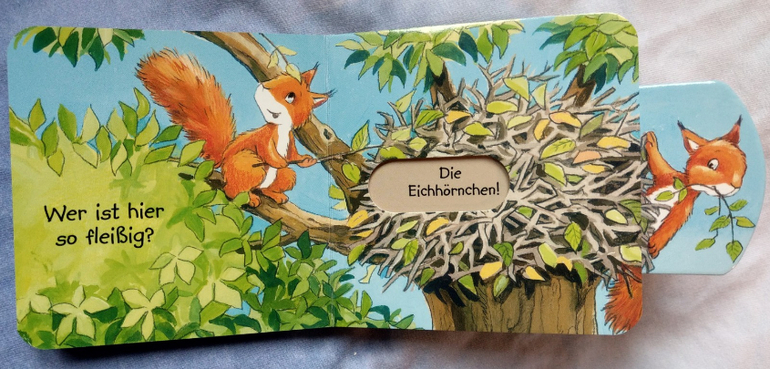 Недавно докупила пару книжек с двигающими детальками, и самое время, сына они увлекают. По-моему, правда, сам процесс гораздо интереснее, чем картинки, в нем задействованые😅