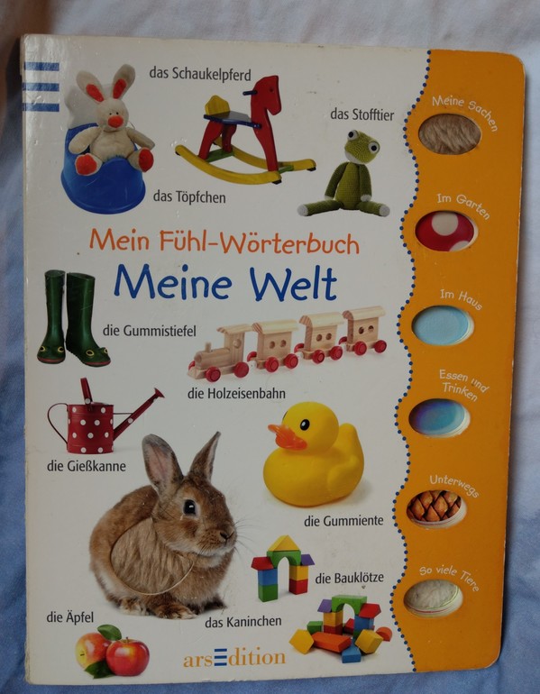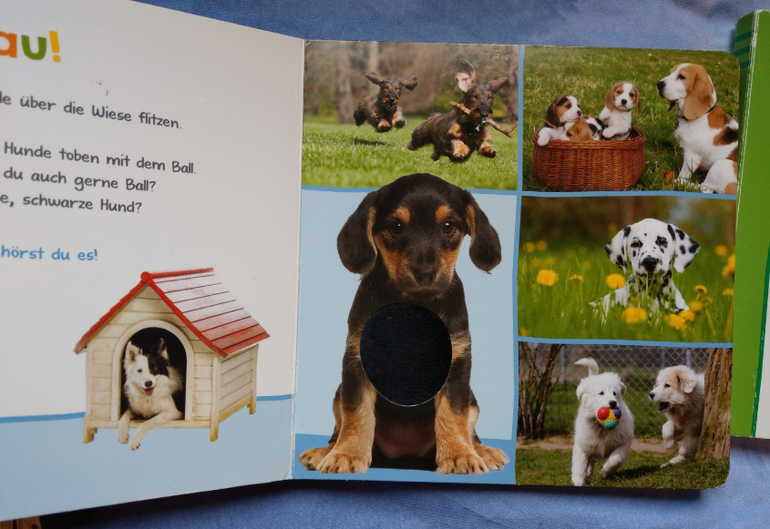 Потом я случайно натолкнулась на эти музыкальные книги, и взяла сразу две)) В каждой по пять животных, и для каждого из них несколько фотографий, тактильная вставка и звук настоящего животного. Очень Тим их любил несколько месяцев (слева, с собакой внутри так вообще залюбил). Сейчас тоже периодически находит и слушает.