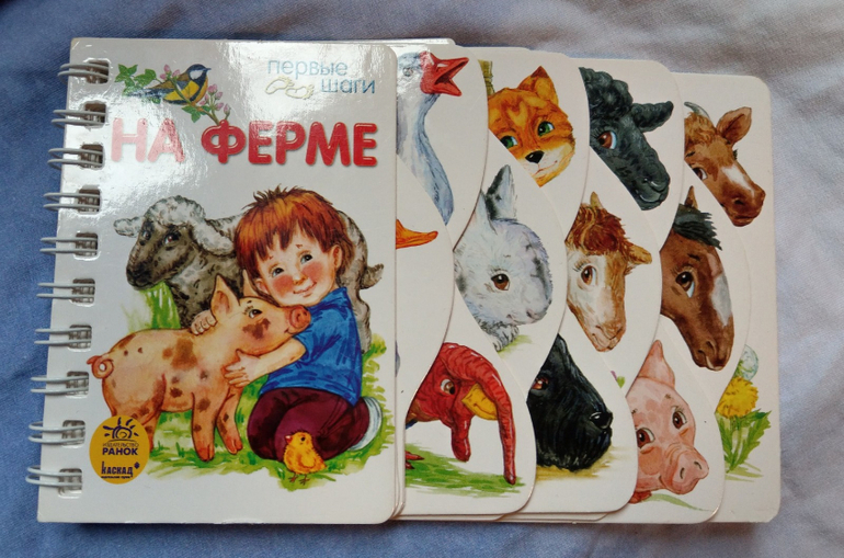 Последние два месяца у нас на игровой полочке потихоньку собирается компания животных Schleich, и вот ими я иллюстрирую еще одну книжку про животных "На ферме". Любим полистать, поозвучивать, порассматривать картинки в ней. Еще дома есть из этой серии про формы, цвета и цифры, но они интереса пока не вызвали.