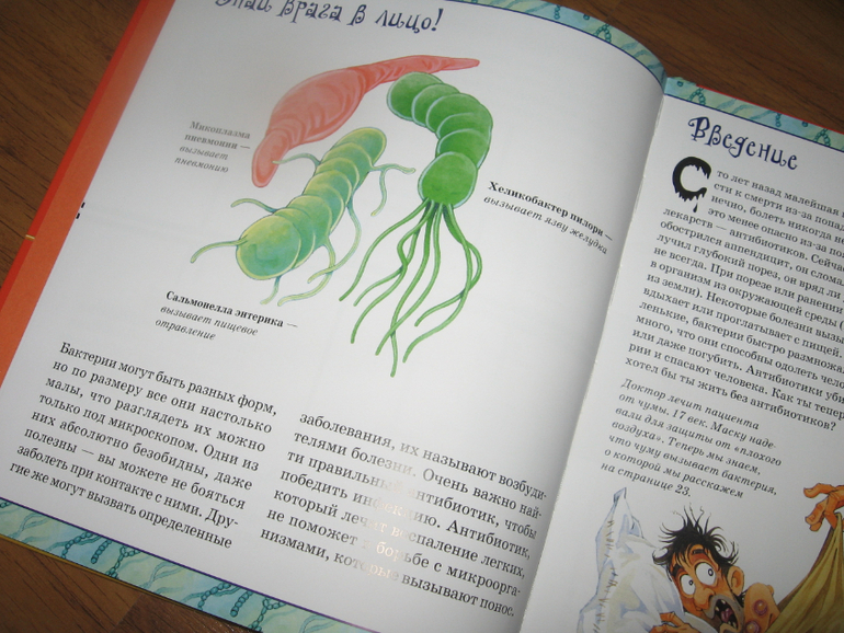 На мой взгляд, не самая-самая книга на тему бактерий и антибиотиков, но за счет ярких рисунков и кратко изложенной информации, для начального ознакомления и формирования интереса, вполне подойдет.