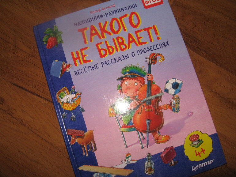 Эту книгу Алиса "читает" сама, без всякой помощи. Просто открывает наугад любую страничку и ищет несуразности. Залипать над этой книгой может очень подолгу, так же как и над Волли, а у Егора такие книги совсем не вызывают интереса. Полистал, хмыкнул, что глупости нарисованы и убрал книгу на место, вот и все)) Зато Алиса, начиная всерьез искать что-то, в процессе просто хохочет, ведь клюв вместо носа - это же смешно)))