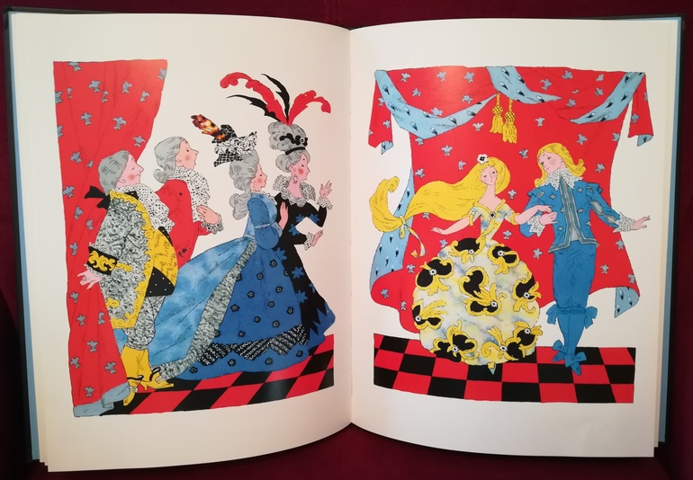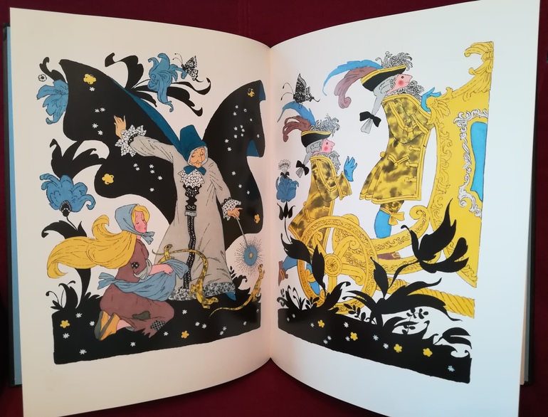 А храню я её обособленно от других тонких книг, чтобы уберечь, ведь она мне дорога. Она стоит на полке на уровне плеча взрослого человека, и дочка пока не берёт книги оттуда. А ещё она стоит рядом с другой моей любимой книгой из детства, приобретенной тоже уже во взрослом возрасте, но на этот раз переизданой, причём в переплёте вместо обложки. Это "Золушка" Шарля Перро с волшебными иллюстрациями Эрика Булатова и Олега Васильева.