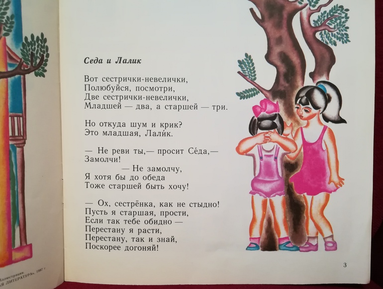 Вот этот стихотворение прямо про меня и мою сестру, я помню, как мама его нам читала.