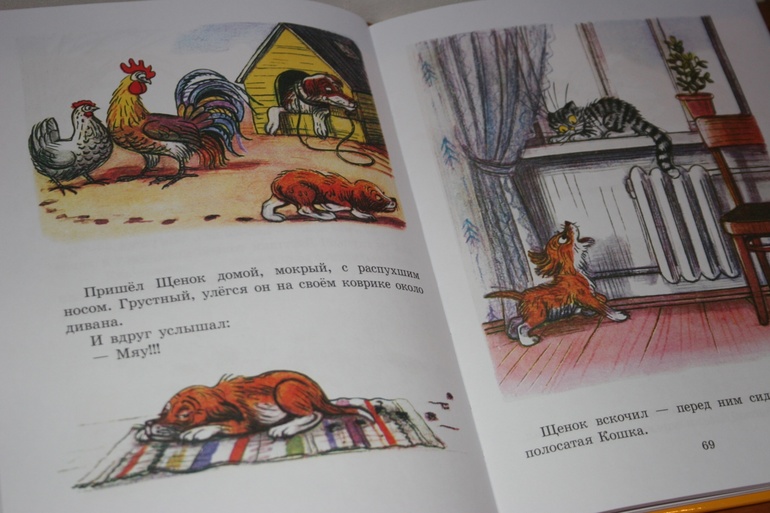 Мне повезло,когда ещё Сутеев выходил в более тоненьких сборниках!Совершенно согласна,что читать в толстом формате "бессмысленно и беспощадно") Помнится толстенный неподьемный сборник со сказками,который дочка замуркала! И он,конечно,весь развалился!