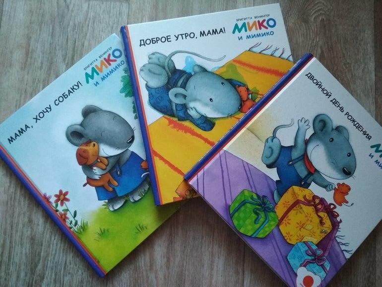 Сколько оказывается книг про Мико! У нас только одна была "Мама, я ухожу из дома!", Ильдар тоже её одно время любил, потом я чистила полочки и продала её). У вас, Аль, этой части нет?