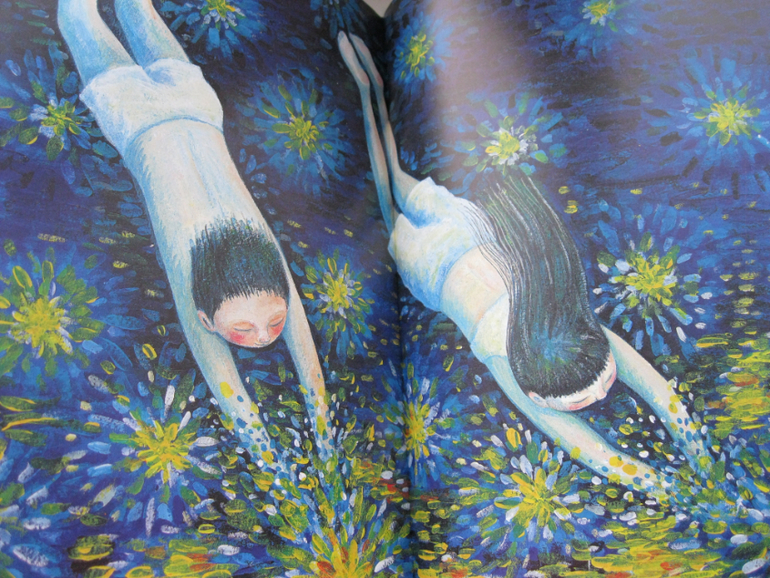Я кстати раcпечатала на стенку и в рамочку похожую их тему ) их - в смысле авторства братьев Фэн. У них есть серия работ с китами, плывущих в небе-сне. А теперь вот и книга есть. Обложка похожа.