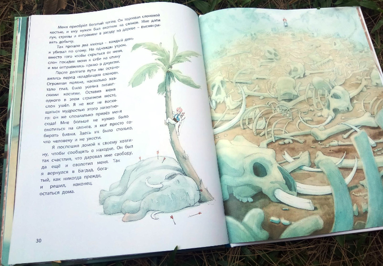 Я бы порекомендовала эту книгу тем, кто только научился читать, но уже перечитал все книжки, где по 5 строчек на страницу. Истории о Синдбаде увлекательны, но достаточно короткие, чтобы не напугать начинающих читать. При этом крупный аккуратный шрифт и полкниги великолепных акварельных иллюстраций. Художник очень порадовал: цвета, оттенки, персонажи - хочется прикасаться и рассматривать.