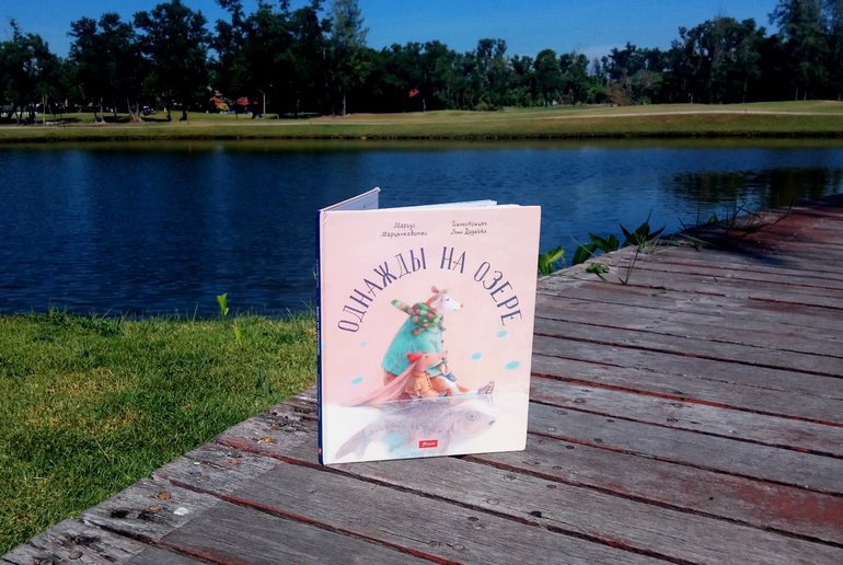 Но вернусь к истории. История ласковая и эмоциональная одновременно. Пятачок позвал корову покататься на коньках. Они наслаждались прекрасным днем и закатом, как вдруг лед вздрогнул. Друзья не сразу поняли, что это большая рыба подо льдом привлекает их внимание. Пятачок стал писать рыбе на льду свои слова, а она отвечала ему на иностранном языке:
