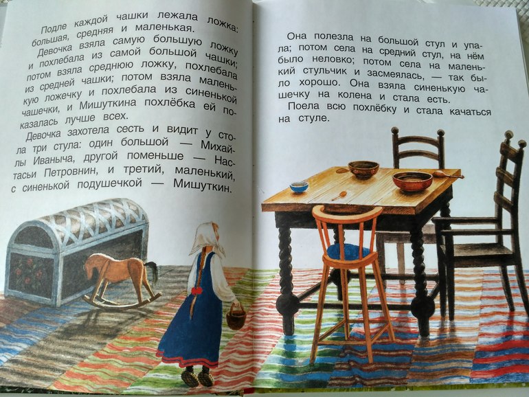 У меня с Устиновым почти такая же история была. Я поняла, что сказки - это больше, чем сказки, когда они с такими иллюстрациями) Костя книгу полюбил безоговорочно (у нас немножко другое издание, но содержание то же), а я получала удовольствие от чтения (до тех пор, пока глаз не стал подергиваться от Трех медведей)).