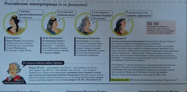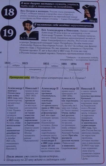 Конечно, на всеохватность эта "шпаргалочка" не претендует, но ряд "фишек", благодаря которым исторический материал может лучше улечься в подростковых головушках, здесь присутствует.