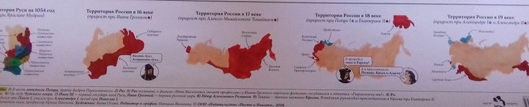 Итак, в верхней части - последовательно города, которые были столицей России в то или иное время.