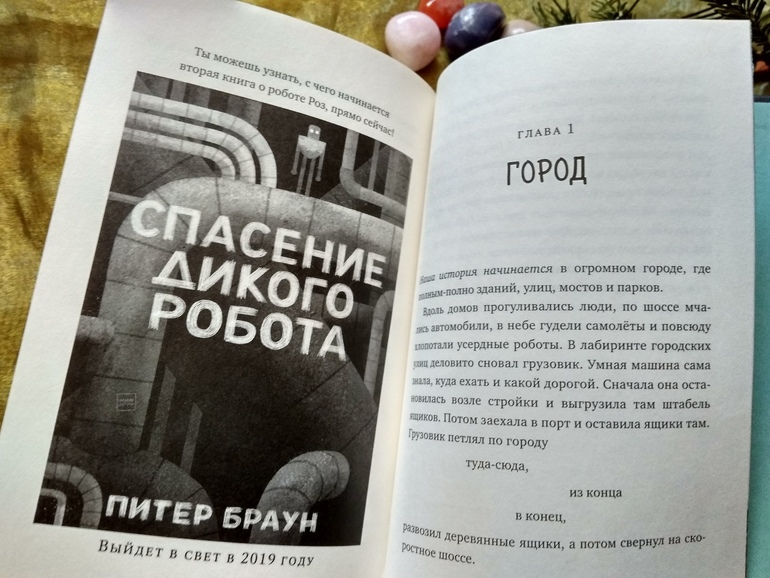 Современная повесть, несмотря на неосознанные ожидания, вдруг оказалась неспешной, доброй, подробно-повествовательной, простым доступным ребенку языком, описывающей знакомство робота с окружающей его действительностью. Его привыкание, встраивание в наличествующую реальность жизни дикого острова. Я не торопясь читала главку за главкой (а они здесь совсем небольшие) пользуясь подаренной закладочкой. И так смешно из книги о роботе торчали оленьи фетровые рожки ) Аля, спасибо еще раз!!!