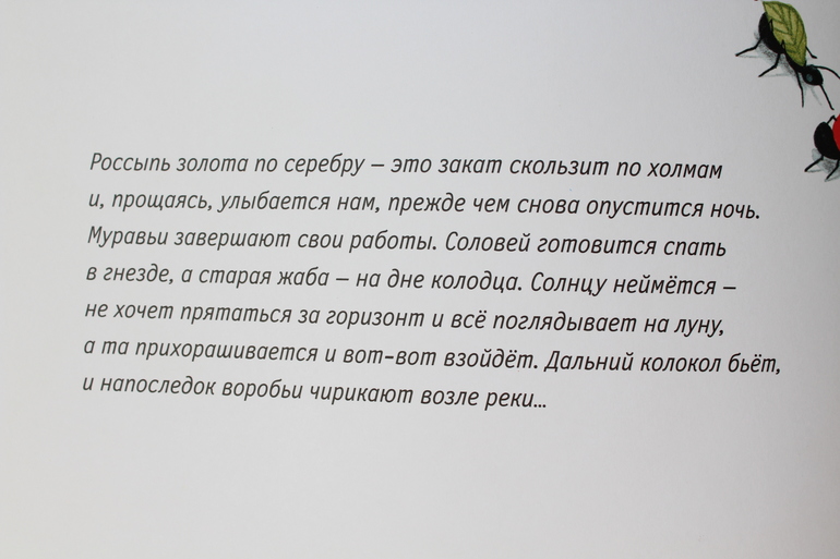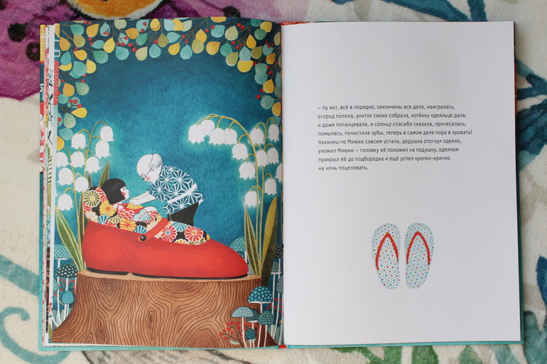 Таких сквозных героев, как эти тапки, в книгах про Миюки много. Вы уже, наверное, заметили, что и муравьи путешествуют по страницам, и та же жаба, и улитки. И чтение книги сопровождается игрой по поиску и слежке за судьбой персонажей. И приносит всё больший восторг ребенку.