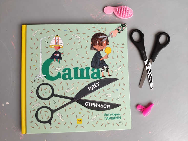 Из нее ребенок поймет всю процедуру: что именно делает парикмахер, как моет волосики, что можно выбрать прическу, что ножницы острые, но если не вертеться, то все будет хорошо)) Проработать все по порядку, все обсудить по книге, потом добавить от себя нюансы, касающиеся той парикмахерской, куда пойдете вы. Что-то вроде: «О, смотри, Саша на кресле может кататься вверх-вниз, как на лифте, а ты будешь сидеть в кресле-самолете, здорово, правда?»