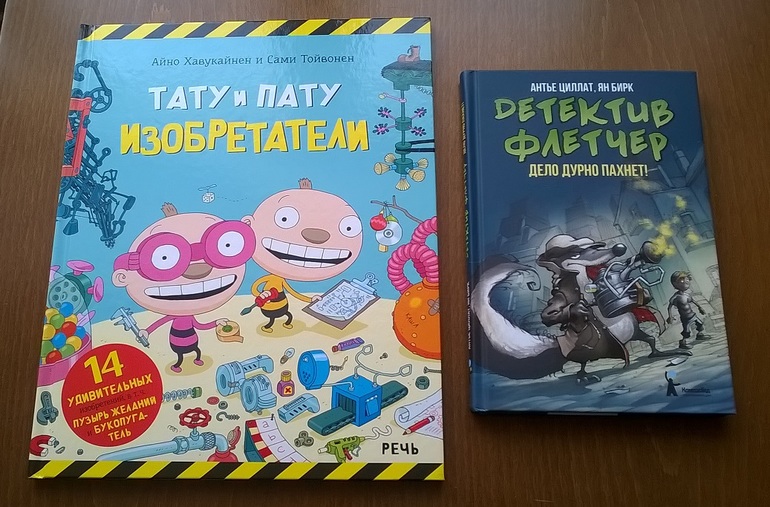 Детка уже прилично шурует в Интернете (даже слишком прилично, буду пароль менять на ноутбуке), и полистать открытый каталог новинок на сайте магазина Даше труда не составило, конечно. «Детектива Флетчера» я и сама хотела заказать, ибо понравились картинки, сканы первых разворотов и сама тематика (детский детектив), а вот приобрести книжечку про Тату и Пату мне в голову не приходило. Две другие положенные Дашей в корзину книги серии я выложила, убедив детку, что вполне может быть достаточно одной, а эту заказала, так как маленький инженер любит сооружать разные конструкции в комнатах, на столах, под столами, возле дверей и пр.