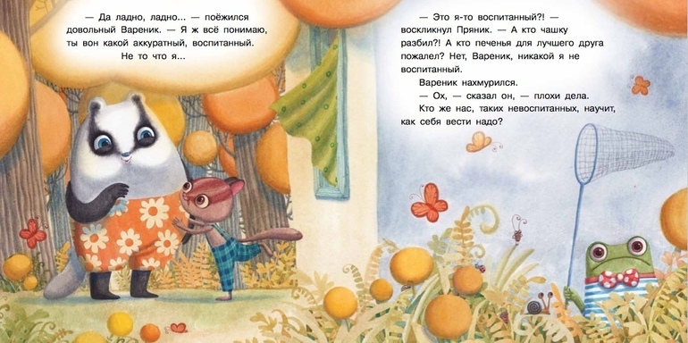 Бурундук Пряник и барсук Вареник то и дело попадают в истории, которые случаются в жизни каждого малыша. Робкий мечтатель Пряник и подумать не мог, что подружится с неугомонным Вареником. Но оказалось, что это совсем не страшно…