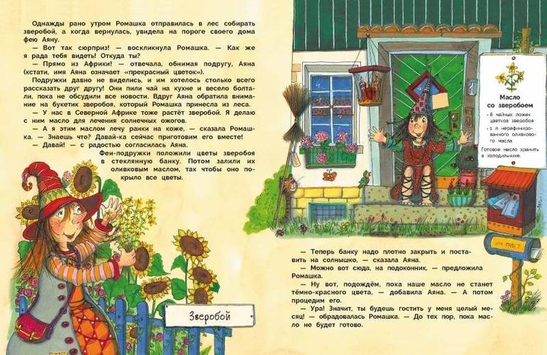Она расскажет вам о полезных свойствах трав. А потом, во время поездки за город, вы сможете найти эти травы и, может быть, даже решитесь приготовить волшебное зелье по рецепту феи. Но будьте осторожны, каким бы простым ни казался тот или иной рецепт, не оставляйте детей без присмотра на кухне. А если вы решитесь использовать какое-либо снадобье, то перед применением обязательно проконсультируйтесь с врачом.