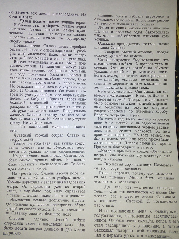 И рассказ Пермяка "Славка" - о хлебоводстве. Совсем недавно благодаря Марине его прочла, очень понравился. В нынешних сборниках не нашла, увы. А рассказ такой хороший, многогранный. Почему не печатают?