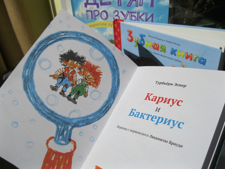 Так, в нашем доме появилась сказка Эгнера Турбьерна "Кариус и Бактериус" (издательство "Белая ворона"). Маленькая такая книжечка по приличной такой цене)