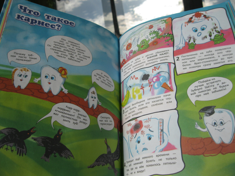 А книга хорошая. Для первого знакомства с темой. И перед первым походом к стоматологу можно почитать. Или, как в нашем случае, когда начинают зубки меняться.