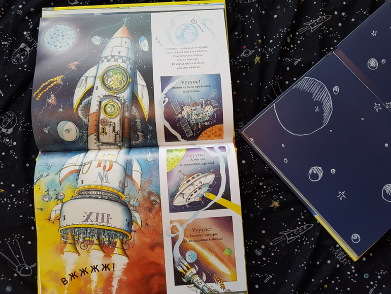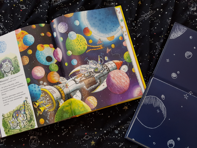 Всем известный "Профессор Астрокот и его путешествие в космос" от издательства МИФ. Классная книга, супер-качественно сделана, красивая, интересная, понятная детям. Если бы меня спросили, какую бы книгу из всех имеющихся у вас на эту тему вы бы оставили как единственную, я бы безоговорочно отдала предпочтение Астрокоту)))).