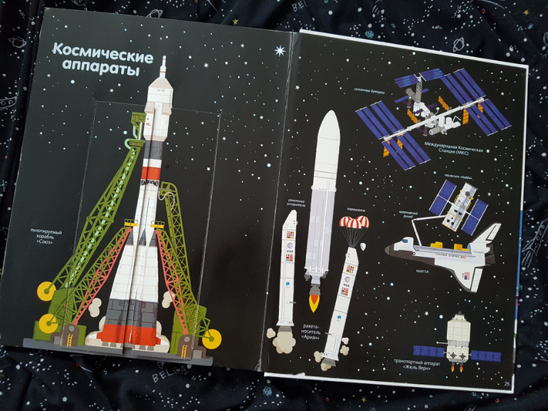 "Большая книга о космосе" одна из первых прочитанных с младшим сыном книг на эту тему. Книга ну прям тоненькая для твердой обложки. С раскладывающимися страницами. Мне не очень она нравится, второй раз бы не взяла, рекомендовать не возьмусь. Качество книги низкое, страницы тонковатые, иллюстрации какие-то тусклые и тёмные. Информация в книге сухая, справочная, такое ощущение, что готовили просто книгу-картинку, но для такого формата качество картинок не удалось. Ещё эта странная наклейка на корешке. Забыли что-ли напечатать название и пришлось сверху приклеивать? Эта наклейка со временем начала отходить, да и так она как-то эстетически и тактильно не очень. Жалею о покупке.