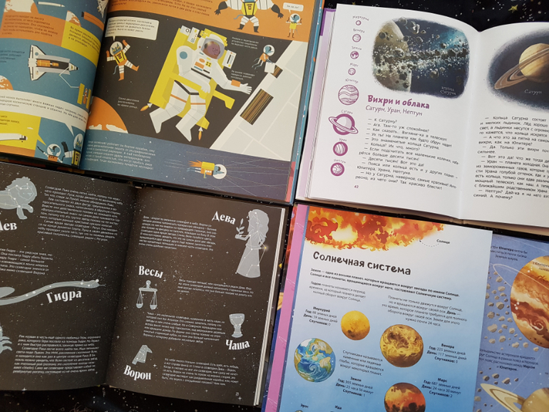 Коллекция книг на тему космоса у нас не очень большая, но мы будем это исправлять). Старший сын у меня не очень был увлечён этой темой, даже про Алису Булычева прочитал всего пару книг. Уже в подростковом возрасте я ему купила несколько книг на тему астрономии, но они так и остались не открытыми, будут дожидаться Ильдара)).