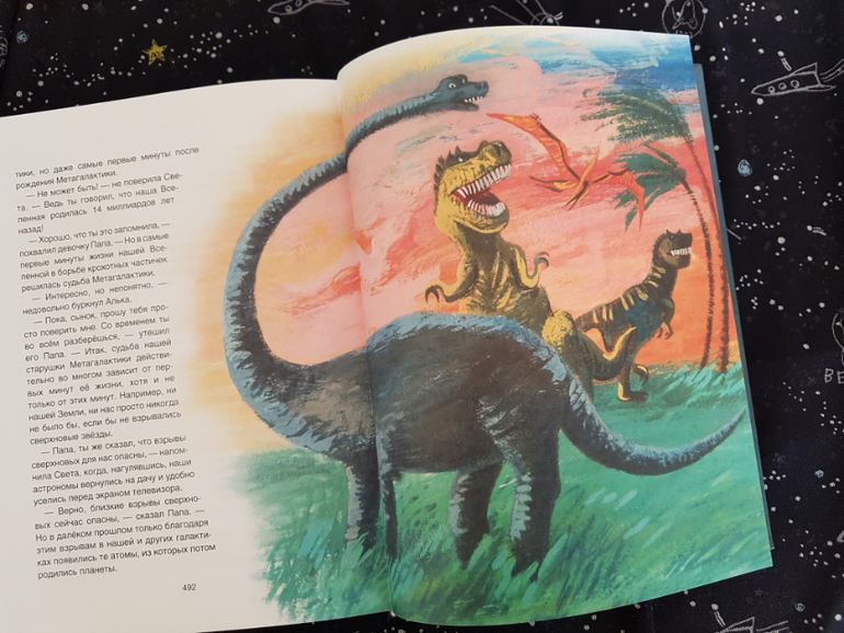 А вот эти "космические" книги мы с удовольствием читаем с Ильдаром. Только у него потом фантазия бушует и он меня засыпает каверзными вопросами, то про черные дыры, то, что за пределами космоса, что было до возникновения космоса, вселенных и т.д. Ответы из книг про бесконечность и про то, что человечеству многие ответы на вопросы ещё не известны, его не устраивают)))). У меня мозг кипит от его вопросов)))).
