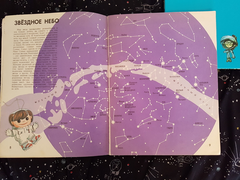 Мой любимый разворот со звездным небом, где я первым делом отыскивала своё созвездие Близнецы).