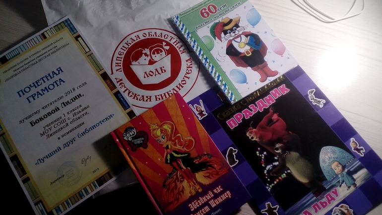 Еще хотела сказать, что в этом месяце у нас было приятное книжное происшествие - на Всероссийской неделе детской книге в нашей областной детской библиотеке Лиду наградили грамотой как активного читателя. Нам было очень приятно( И подарочек подарили! Книгу про пони уже читаем(