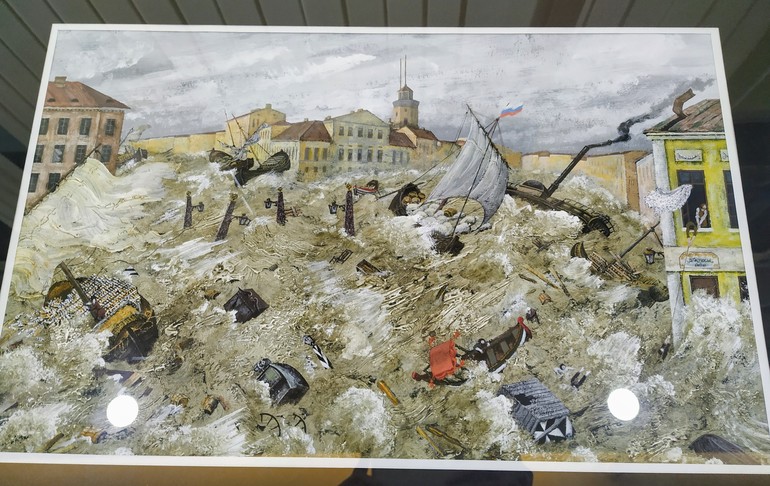 Блики на фотографиях мешают разглядеть (простите!), но как же волны страшны и сильны! Чувствуется мощь воды, которая во время наводнения доходила практически до второго этажа Зимнего дворца.