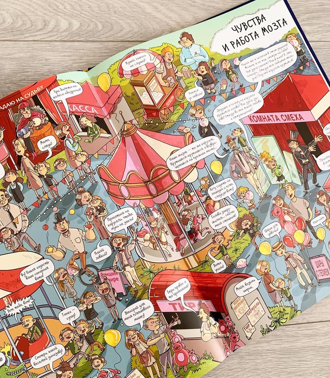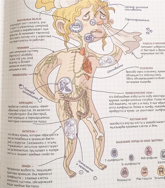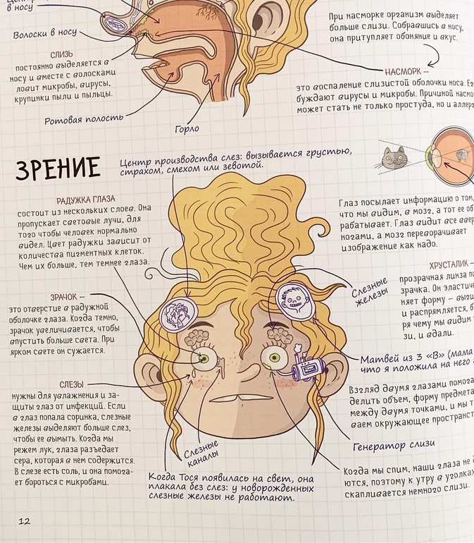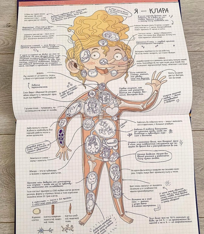 Мне показалось, несмотря на забавные и «детские» рисунки и подачу материала, книга не для малышей, а для тех, кто уже знаком с анатомией. Нет системы и упорядоченности в объяснениях - перечислены и «показаны» интересные факты и небольшое пояснение к ним. Тем не менее ребёнок многое, что узнает и многому улыбнётся) мне очень понравилось объяснение и действие лимфатической системы - на самом деле это не так просто объяснить детям))