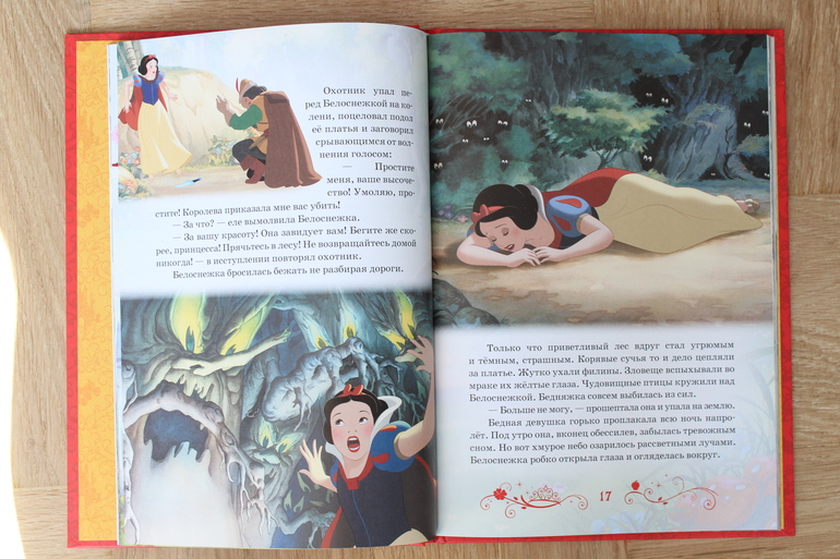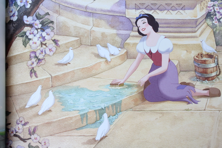 Я не могу представить Белоснежку никак иначе, кроме Диснеевского образа. Этот портрет живёт со мной с детства. Изданий данной сказки меньше, чем "Снежной королевы". Но выбор всё равно имеется. Честно все пересмотрела, и не смогла заставить себя купить никакую другую.