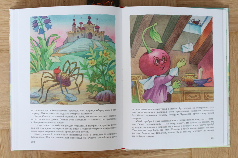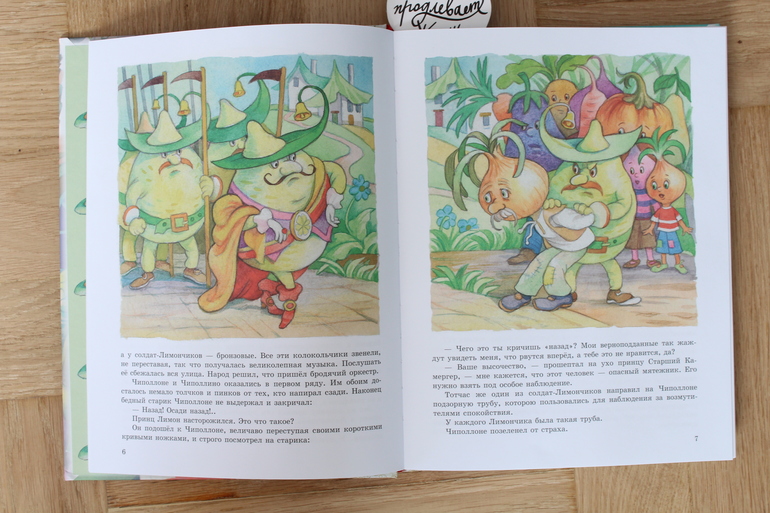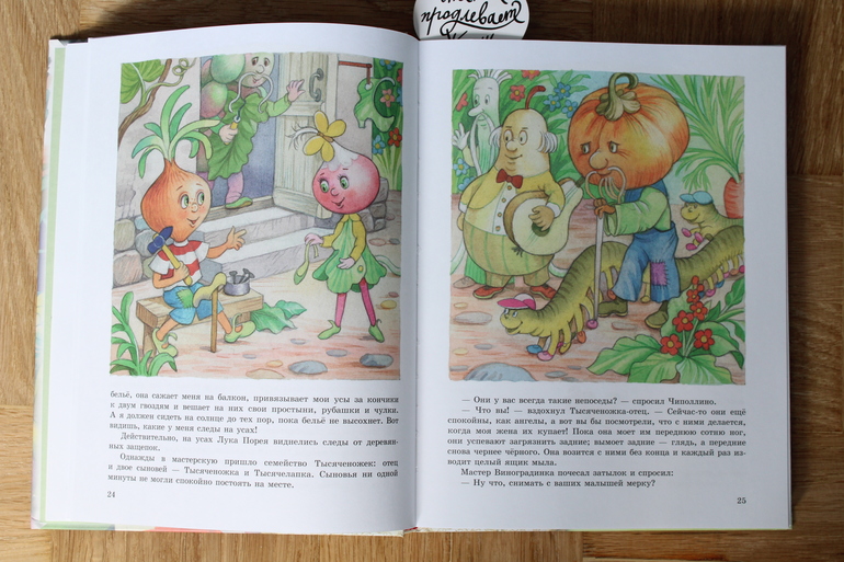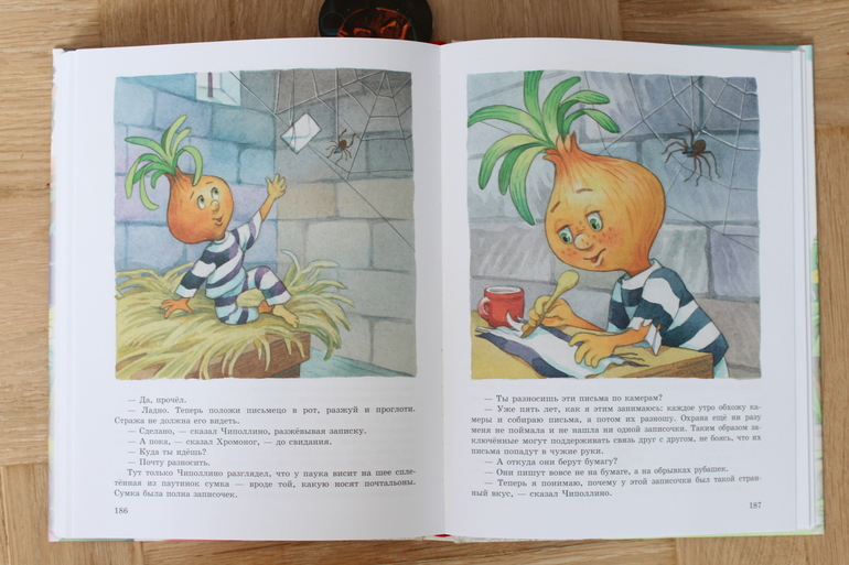 Критериями для выбора этого издания у меня были: 1.похожесть Чиполлино на советского мальчика-луковку. 2. Большое количество иллюстраций. В нашей книге мне очень нравятся сами персонажи: они милые, кругленькие, такие, какими я привыкла их видеть с детства.