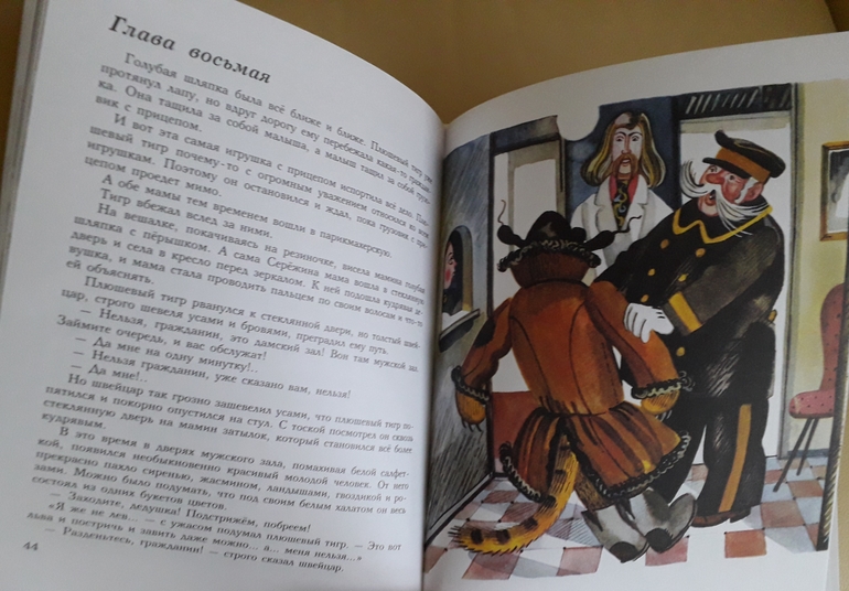 Сюжет достаточно динамичен, тигр постоянно куда-то бежит, везде опаздывает. Случаются с ним и забавные ситуации, один проглоченный гардеробный номерок чего стоит.
