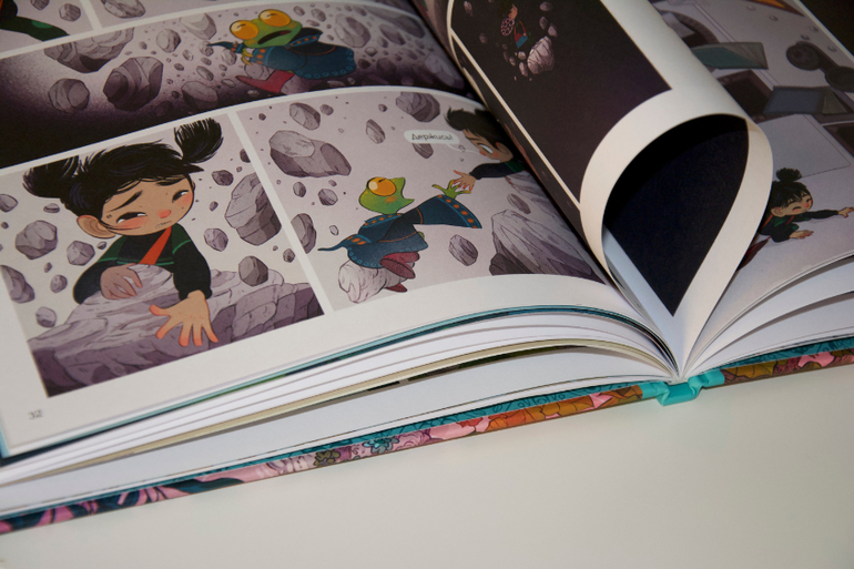 От тревожно темного - черного-серого-синего-фиолетового ей удается увести в радужное пространство... Девочка Сэнди неизменная героиня книг Лорены Альварес... Нет, это не книга - это графический роман! Который, в общем-то, понятен без слов! Настолько сильны иллюстрации!