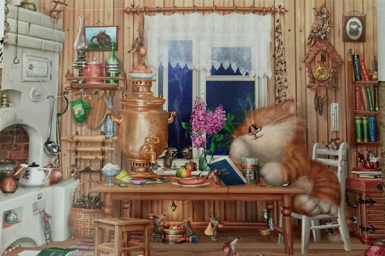 Печка, самовар, часы с кукушкой, а особенно рукомойник для мышей меня покорил! Хочу туда) и чудесный совенок пуговка)