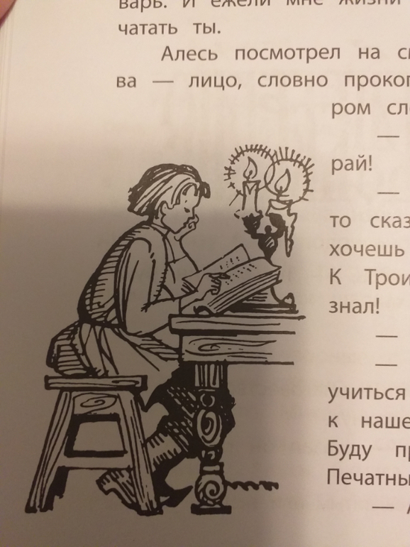 Вторая повесть, которая и дала название сборнику, меня заинтересовала значительно меньше. Мальчик Алесь вроде как хотел обучаться грамоте, после разорения своего села попросился доехать до Москвы, где поступил в подмастерья к словолитцу Ефремову. Спустя несколько лет мастер Ефремов скончался, а Алесь, боясь оказаться в монастыре и тоскуя по воле, сбежал. В это время царь Петр решает создать новую азбуку и на Печатном дворе создают образцы новых букв. Случайно вместе с этими образцами Алесь доезжает до самого царя, мимоходом видит великую битву под Полтавой, а после опять решает учиться и возвращается в Москву. Как-то так.