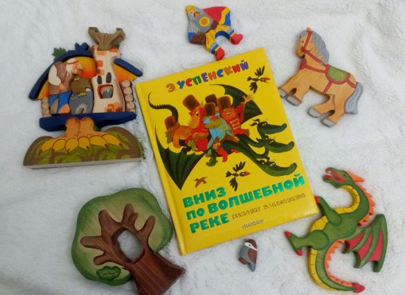 Обожаю детский фильм - сказку Там, на неведомых дорожках, в детстве смотрела сто раз, там мне нравилось, что обычный мальчишка попадает в волшебную сказку, где собраны самые колоритные персонажи детских русских сказок. И Баба-яга в исполнении Т. Пельтцер просто неподражаема! А вот то,что этот фильм сняли по книге Э. Успенского Вниз по волшебной реке , я, к стыду своему, узнала совсем недавно.. И в один из удачных дней , когда цены на книги становятся такими, что трудно удержаться от покупки, решила, такая книга нужна в домашней библиотеке, мне понастольгировать, а ребенку на будущее) Да, эта сказка не входит в список первых сказок на прочтение, чтобы ее читать, нужно уже знать основных действующих отрицательных и положительных героев русских сказок, Кощея, Змея Горыныча, Соловья Разбойника, Василису Премудрую, царевну Несмеяну, и не только русских, упоминается и Волк, который особо неравнодушен к чужим бабушкам и внучкам)