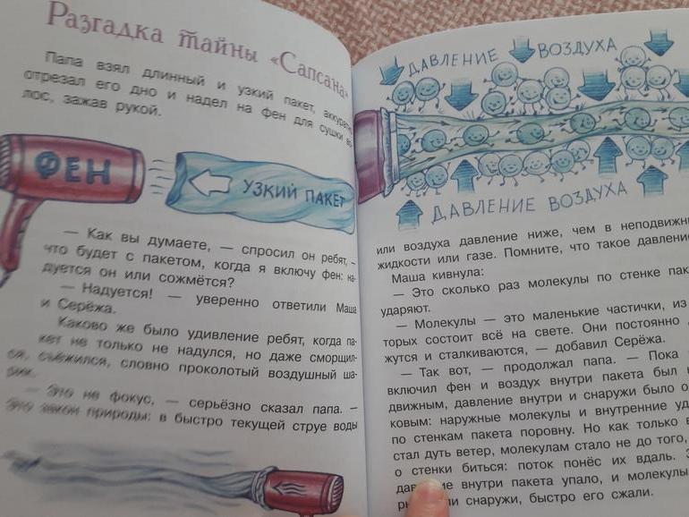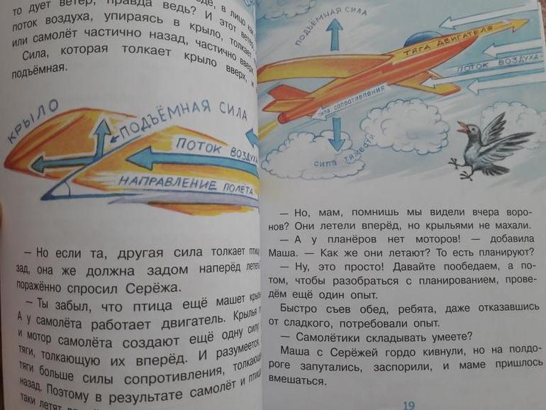Книга, на мой взгляд, подойдет для любознательных детишек, т.к. в ней много ответов на разные вопросы, и не только о самолетах. Все очень наглядно объясняется главными героями, мамой или папой для их детишек Сережи и Маши, это и пример для нас, родителей, как можно объяснить явления и законы физики для наших детей: