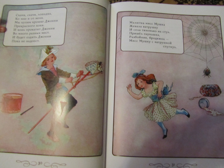 Эту книгу помню купила исключительно из-за ретро иллюстраций Ричардсона, люблю я такое, некая викторианская Англия)) Рисунки к сожалению во многом нечёткие, но вряд ли думаю найдется издательство, которое с оригиналов будет печатать.. так, что довольствуюсь тем, что есть. Перевод не Маршака и не Чуковского, вообще неизвестного мне переводчика, поэтому некоторые знаменитые стишки звучат не так привычно, хотя у него перевод более близок к оригиналу, чем более авторские что ли переводы известных наших писателей. Тем не менее книге быть в нашем доме, Куда же без Матушки Гусыни, пусть и в таком варианте)) Книга с пухлой обложкой (правда цветные буквы на обложке весь вид портят, в этом ОлмаМедиа чем то АСТ напоминает😆) и мелованными тонкими страницами (хотя мне этот факт даже нравится), стихов в книге много, цена приятная в отличие от многих других сборников гусыни.