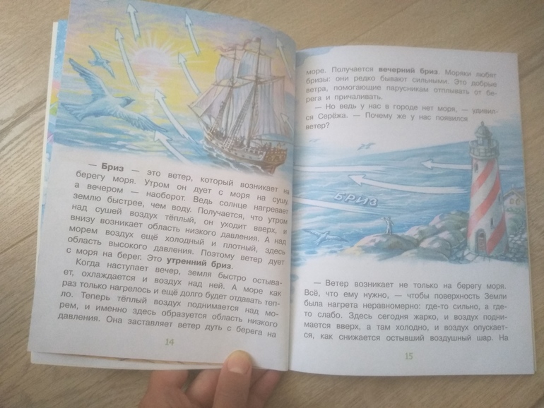 Из книги также дети узнают, что такое утренний и вечерний бриз, откуда берутся облака на небе и в каком городе лил самый долгий непрерывный дождь в мире!