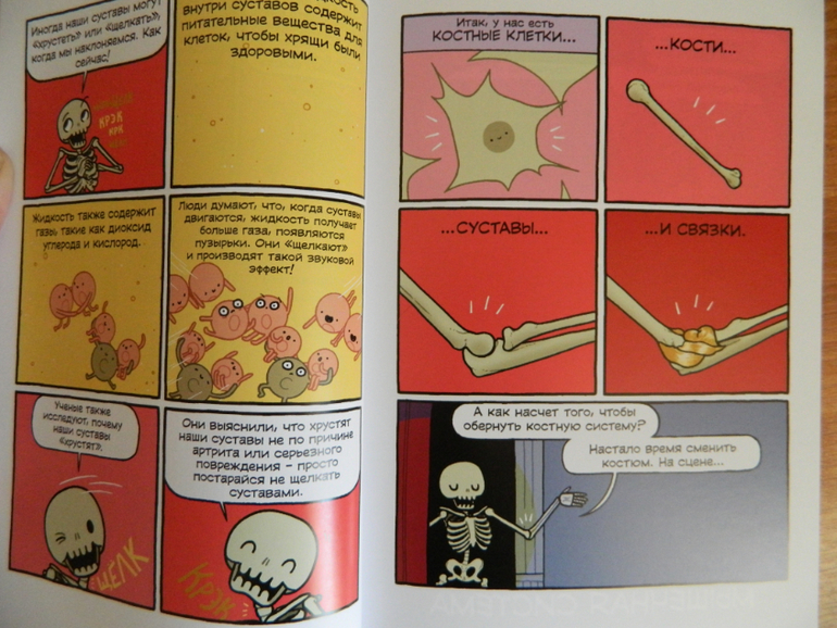 Рисунки яркие, информативные, дополнены комментариями (доступными для понимания меня дилетанта:)). Комикс подан с юмором! Читая, я не раз улыбнулась и посмеялась, и, конечно, многое узнала, каждый раз удивляясь, насколько сложно и продуманно устроен наш организм.
