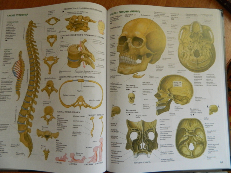 В книге несколько разделов: Костная система, Мышечная система, Дыхательная система, Сердечно-сосудистая система, Пищеварительная система, Выделительная система, Эндокринная система, Репродуктивная система, Иммунная система, Нервная система, Органы чувств: обоняние, вкус, слух, зрение и осязание.