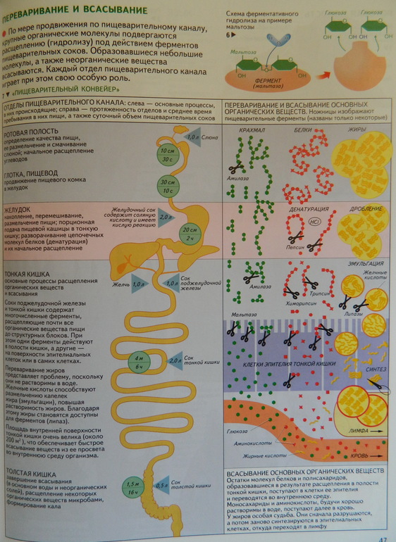 Схематично, подробно с комментариями "Переваривание пищи"