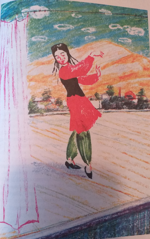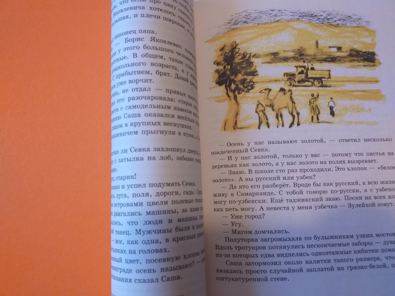 Книга начинается в обложки, вернее, с форзаца - яркого и солнечного, как апельсин! И он словно предсказывает, что сейчас мы отправимся в жаркий Узбекистан!