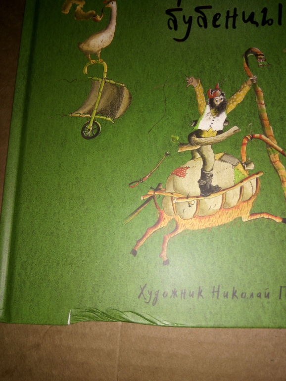книжное разочарованиеВчера получила свой заказ от Лабиринта. Распаковывала его уже после отъезда курьера, так как книг было много, и не хотелось задерживать человека. Всё было нормально, пока я не достала со дна коробки последнюю книгу, а именно замечательный сборник потешек с иллюстрациями Николая Попова "Трынцы-брынцы, бубенцы"... Передняя обложка снизу помята и надорвана. А на задней обложке несчастной книги оказалась едва ли не сквозная дырка! И ещё маленькие круглые отпечатки возле этого места, очень похожие на следы каблука ((( В нескольких сантиметрах от этого есть ещё следы второго каблука, но там обложка лишь немного надорвана. То есть книга валялась где-то у них на полу, и какая-то дама (видимо, сотрудница Лабиринта) хорошенько так погарцевала по ней на шпильках.